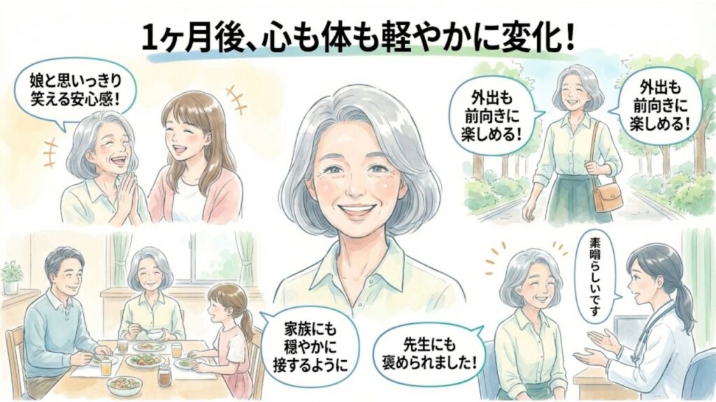 この心のゆとりが、毎日の小さなイライラを減らしてくれたのだと思います。夫や娘に対しても、以前より穏やかに接することができるようになったのは、間違いなくこの習慣のおかげかもしれません。婦人科の診察の時、先生に「最近、尿漏れが気にならなくなってきました」と伝えたら、「続けているんですね、素晴らしいです」と褒めてくださって、とても嬉しかったのを覚えています。